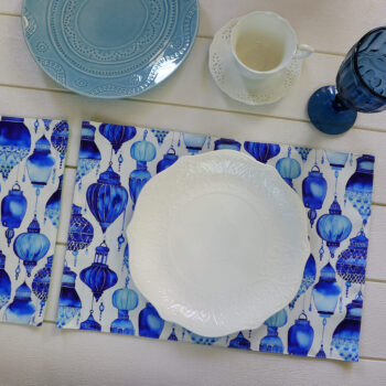 Vintage banana leaves with traditional wicker background print fabric placemats. Comes in sets of 6.