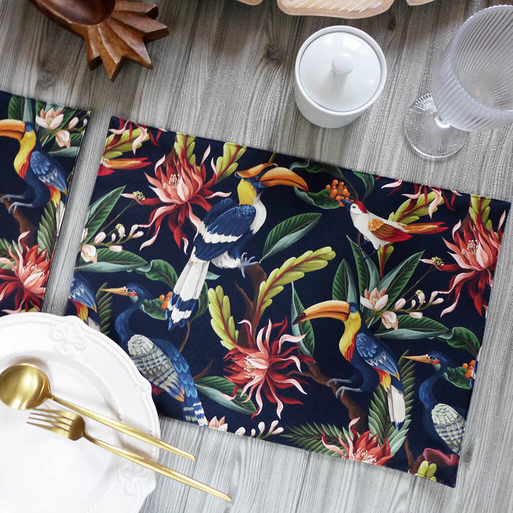 Tropical birds which are always a staple motif to tropical designs.