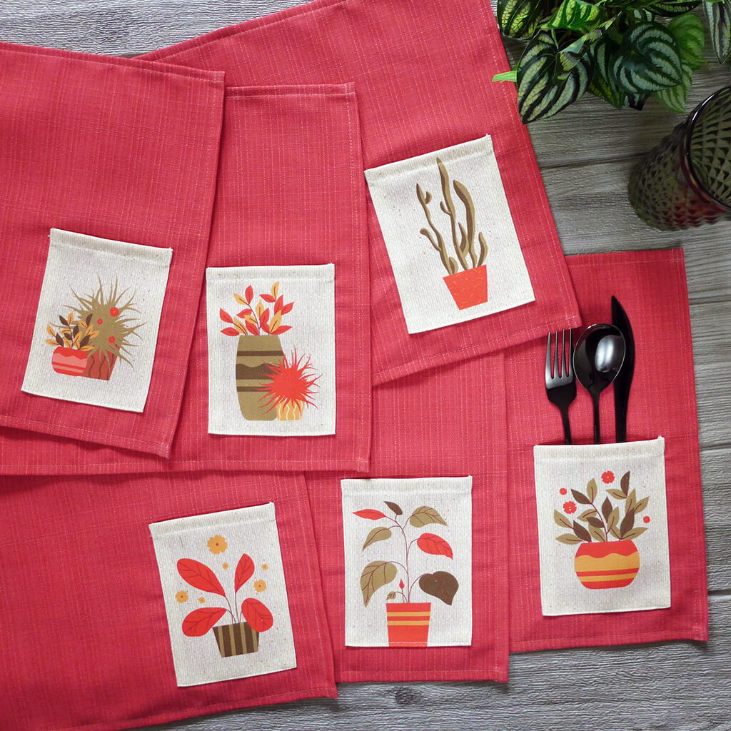 Floral artsy pocket placemats with assorted designs of 6 (1 set).